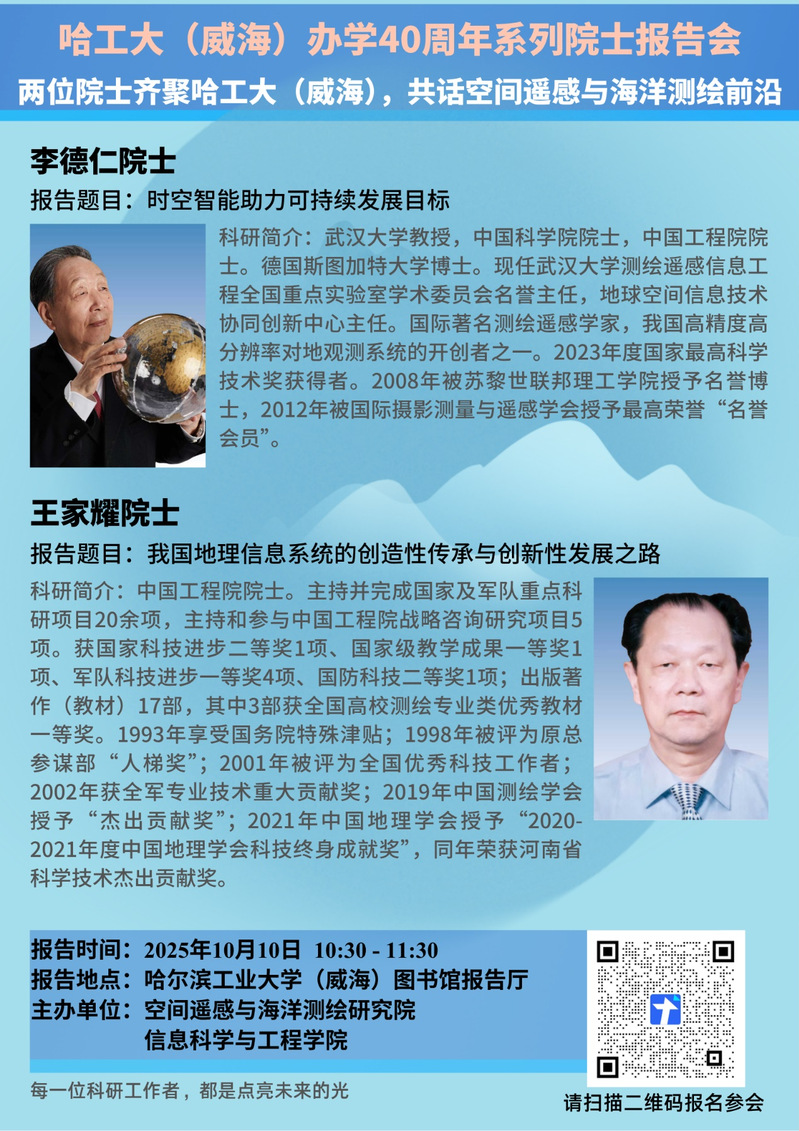 本次報(bào)告會(huì)是哈爾濱工業(yè)大學(xué)在威海辦學(xué)40周年系列活動(dòng)的重要組成部分,期待廣大師生與院士面對(duì)面交流,拓展學(xué)術(shù)視野,激發(fā)科研熱情!